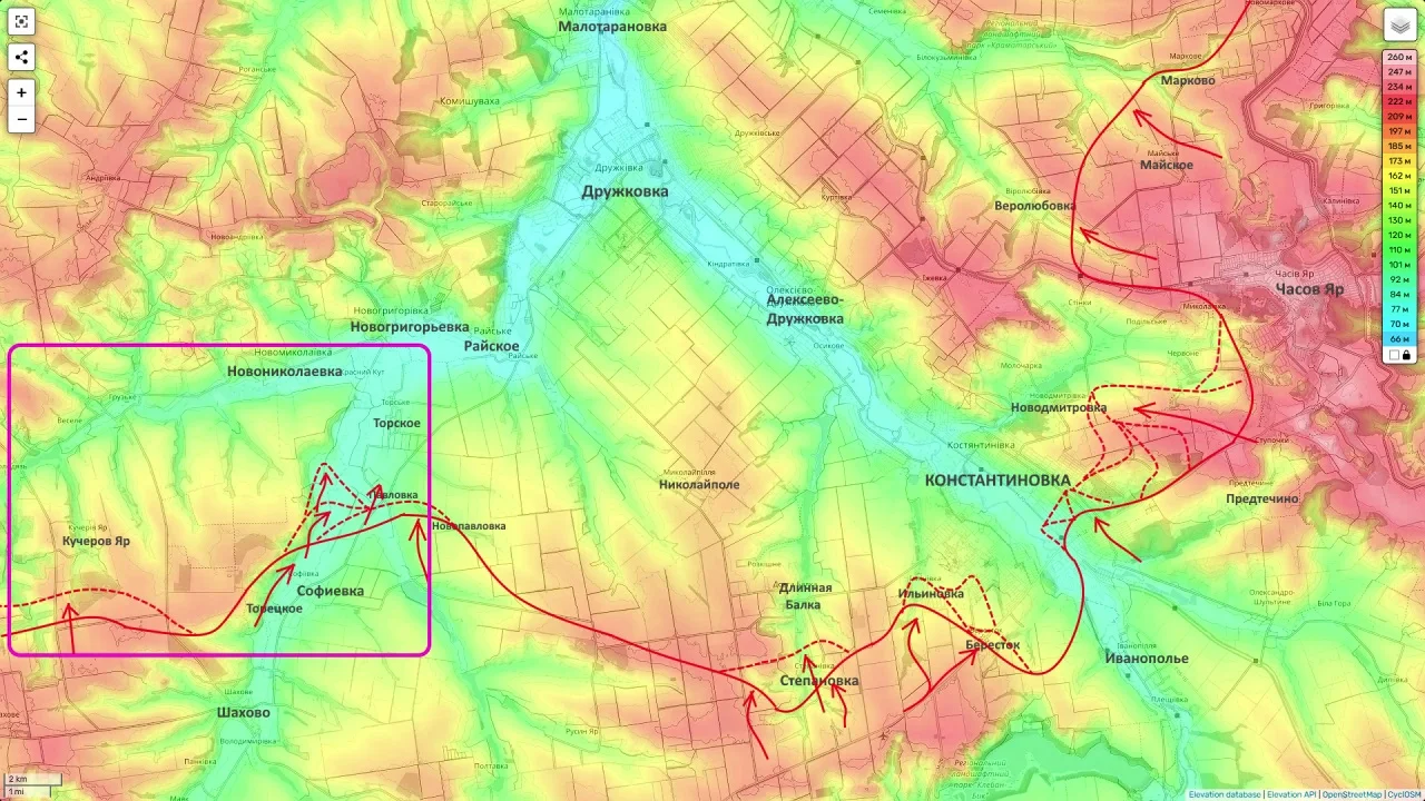 После зачистки Миньковки и Приволья подразделения ВС РФ вышли к новому участку канала Северский Донец — Донбасс. Российские части начали продвижение в долину в сторону Малиновки и Краматорска, формируя условия для дальнейшего наступления.