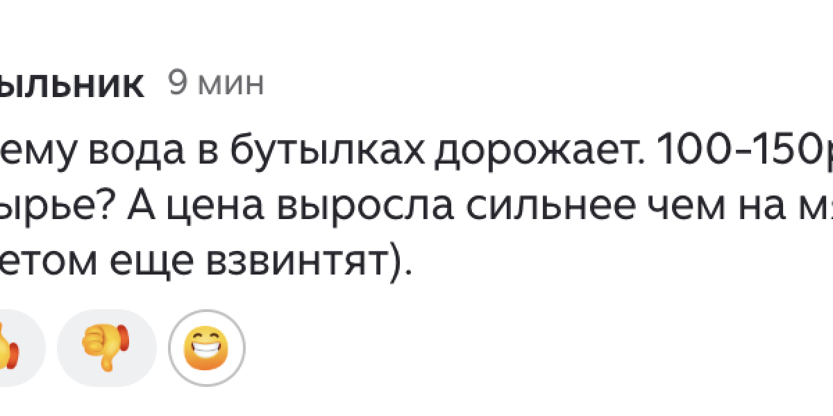 В магазинах картинка совсем другая. Огурцы дороже помидоров, хотя вырастить их дешевле хоть зимой, хоть летом. Молочные продукты приблизились к деликатесам. Цены не снижаются, а прирастают с каждым походом за продуктами. А про питьевую воду в бутылках по 5 литров уже и в комментариях спрашивают — не знаю ли я, откуда такой всплеск без видимых причин?