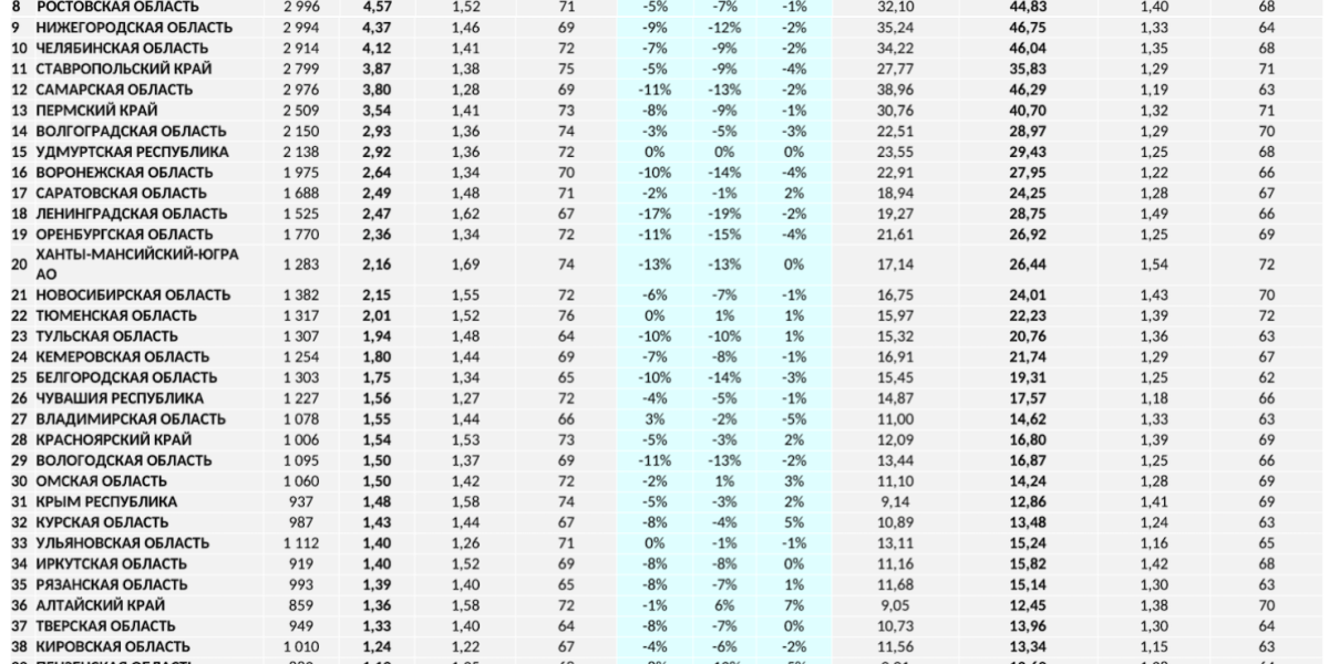 ·         Татарстан – 4,95 тыс. кредитов на 7,06 млрд руб. (кол-во -22%, объём -19%).