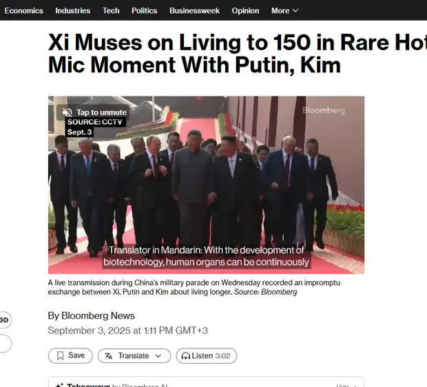Путин и Си собрались жить до 150 лет? Что подслушали западники на Параде в Пекине