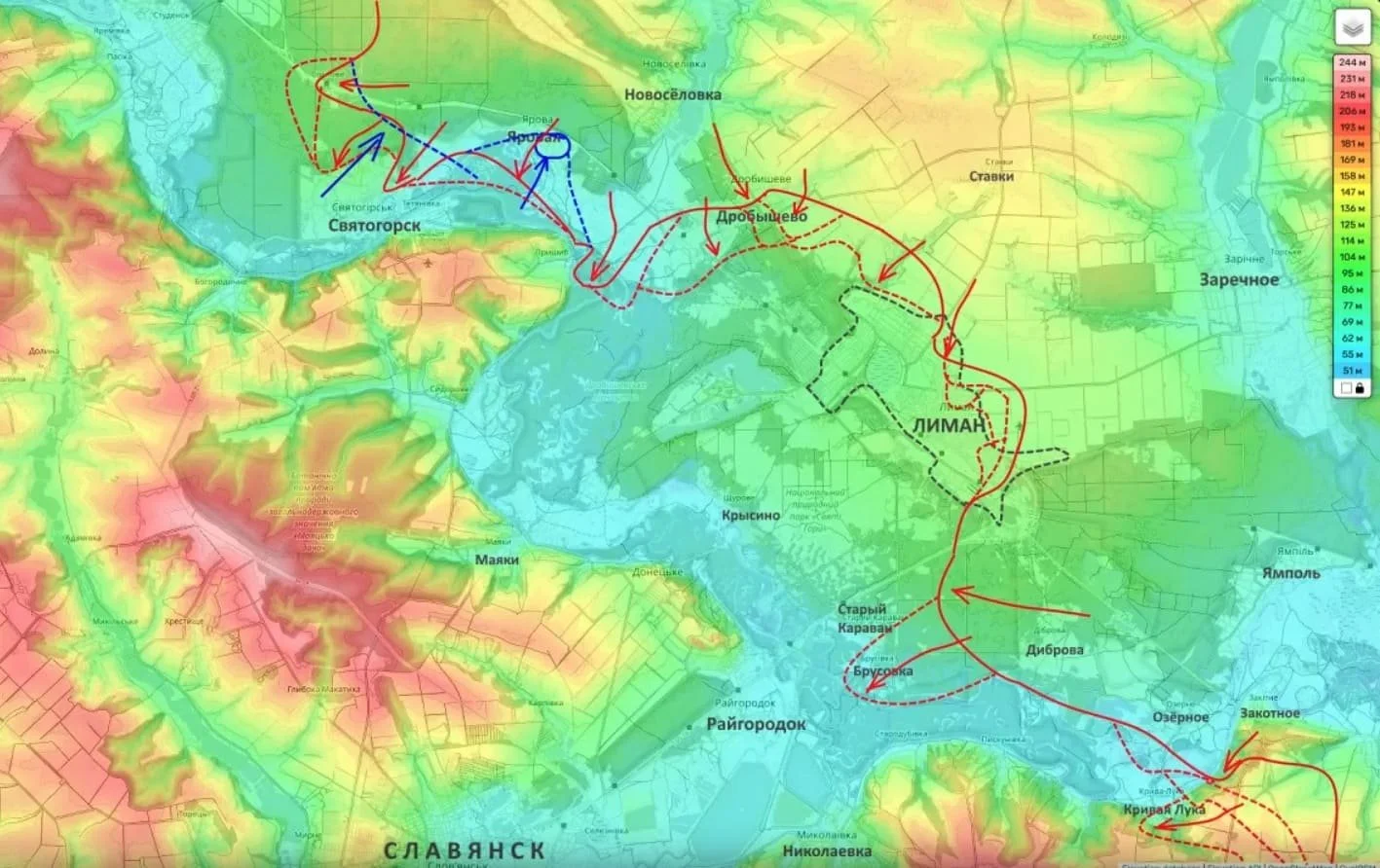 В настоящий момент усилия ВС РФ сосредоточены на том, чтобы перерезать оставшиеся коммуникации местной группировки противника. План командования очевиден: опираясь на плотную блокаду украинских сил в городе, начать планомерное освобождение Лимана.
