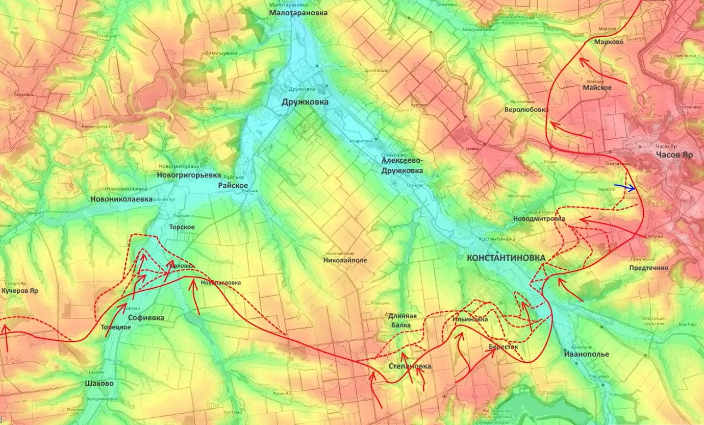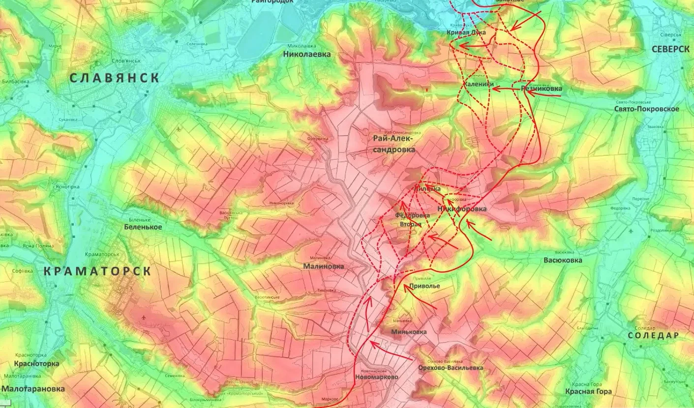 На Славянском направлении также есть важный тактический успех: российские штурмовики подняли флаг над населенным пунктом Каленики. Это открывает путь к охвату Рай-Александровки с севера через лесные массивы.